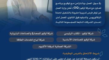 وفي هذا الإعلان، قدمنا لكم معلومات مهمة حول الفرص الوظيفية في عمان. نتمنى التوفيق لجميع المتقدمين والباحثين عن عمل.